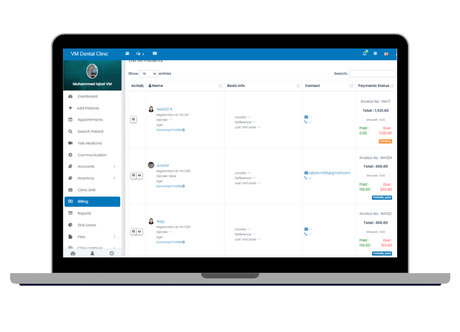 We allows for easy tracking of transactions and automatically generates a profit and loss statement for the clinic, giving a clear picture of where the clinic is in terms of its financial goals.